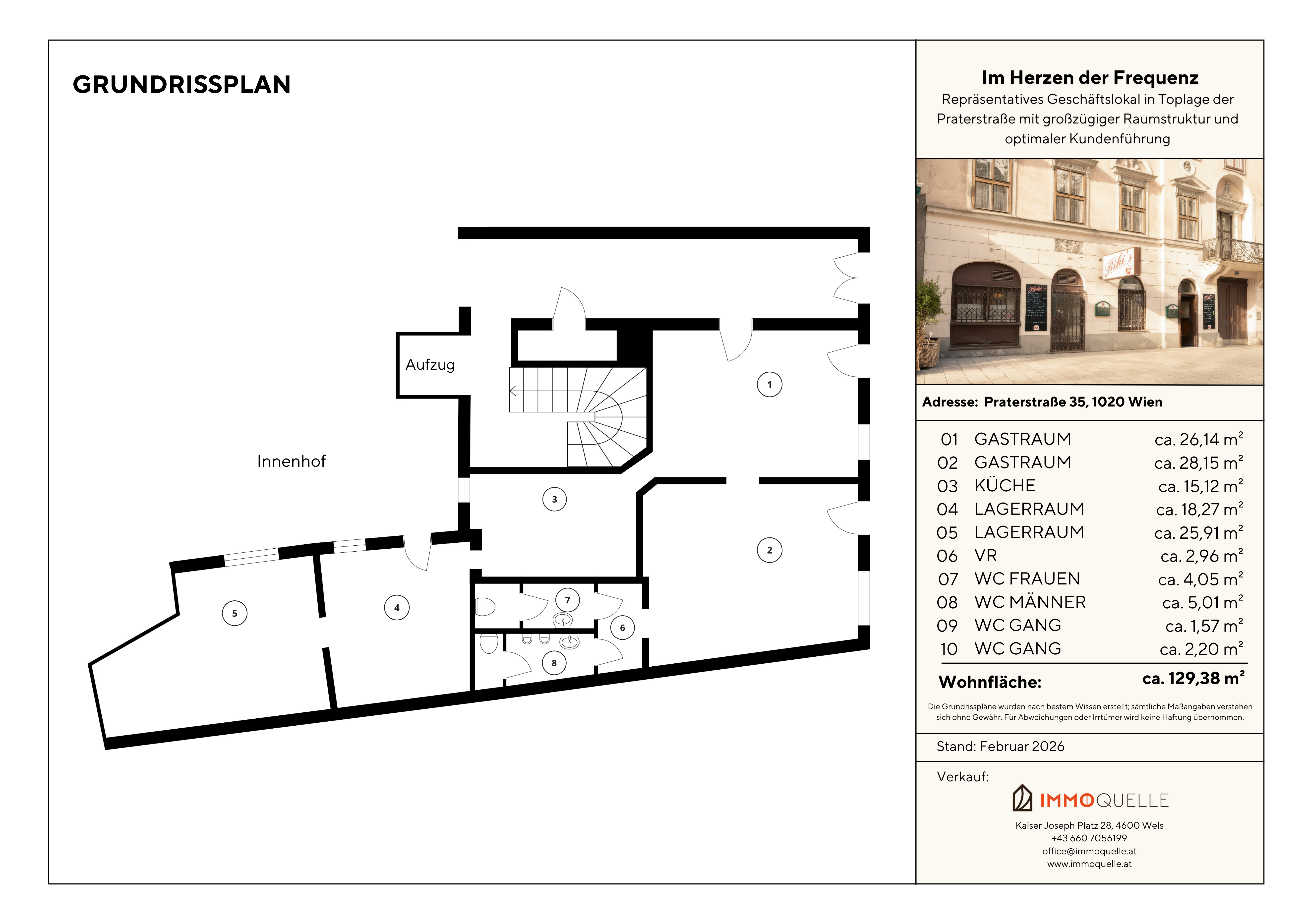Willkommen an einer der bekanntesten Adressen Wiens - der Praterstraße im 2. Bezirk. Eine Lage, die seit jeher für Frequenz, Urbanität und wirtschaftliche Dynamik steht. Genau hier präsentiert sich dieses vielseitige Geschäftslokal mit ca. 129,38 m² Nutzfläche als seltene Gelegenheit für Unternehmer, Investoren oder Marken mit Anspruch auf Sichtbarkeit und Präsenz.