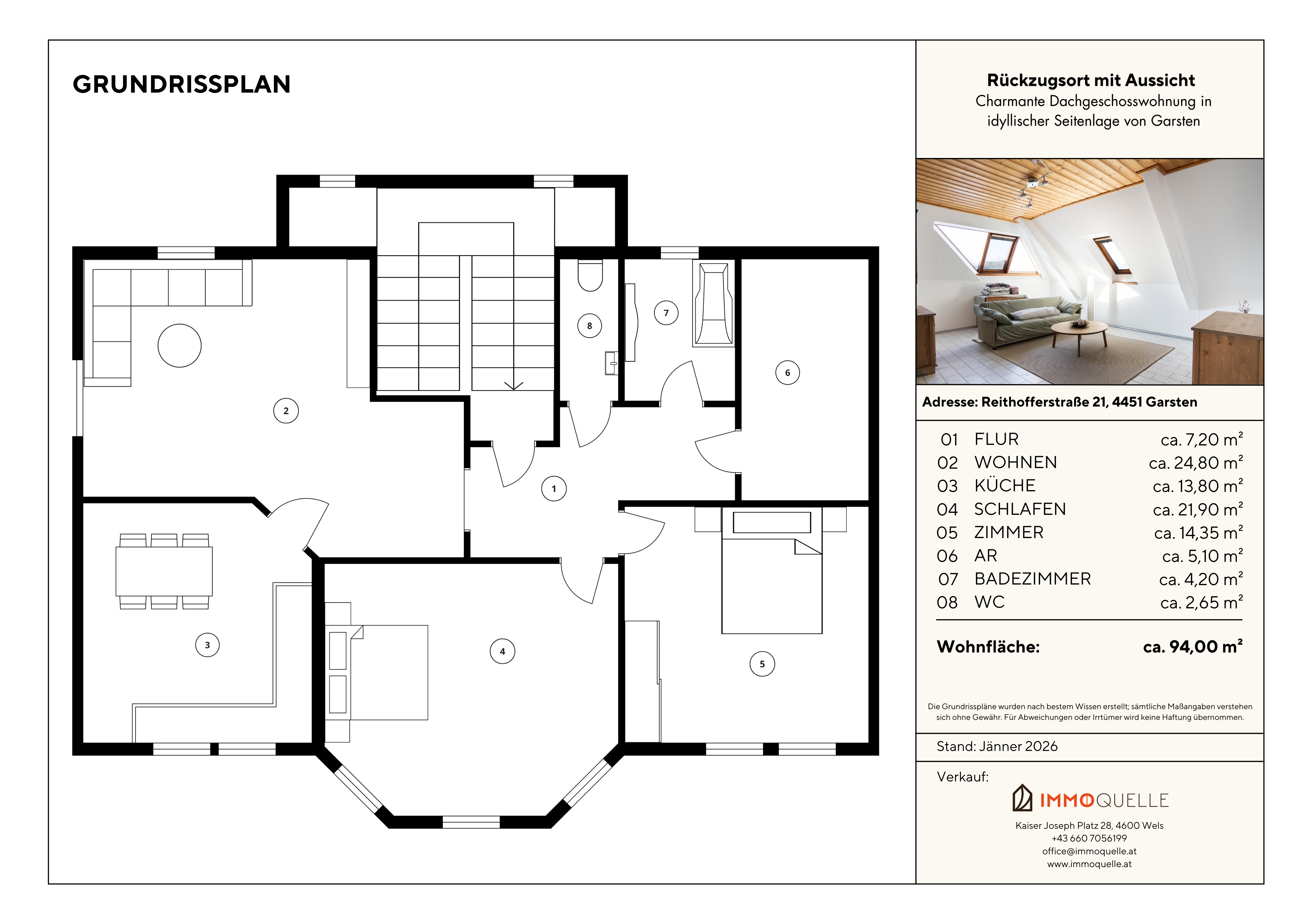 - Großzügige 94 m² Wohnfläche im Dachgeschoss (3. Stock)