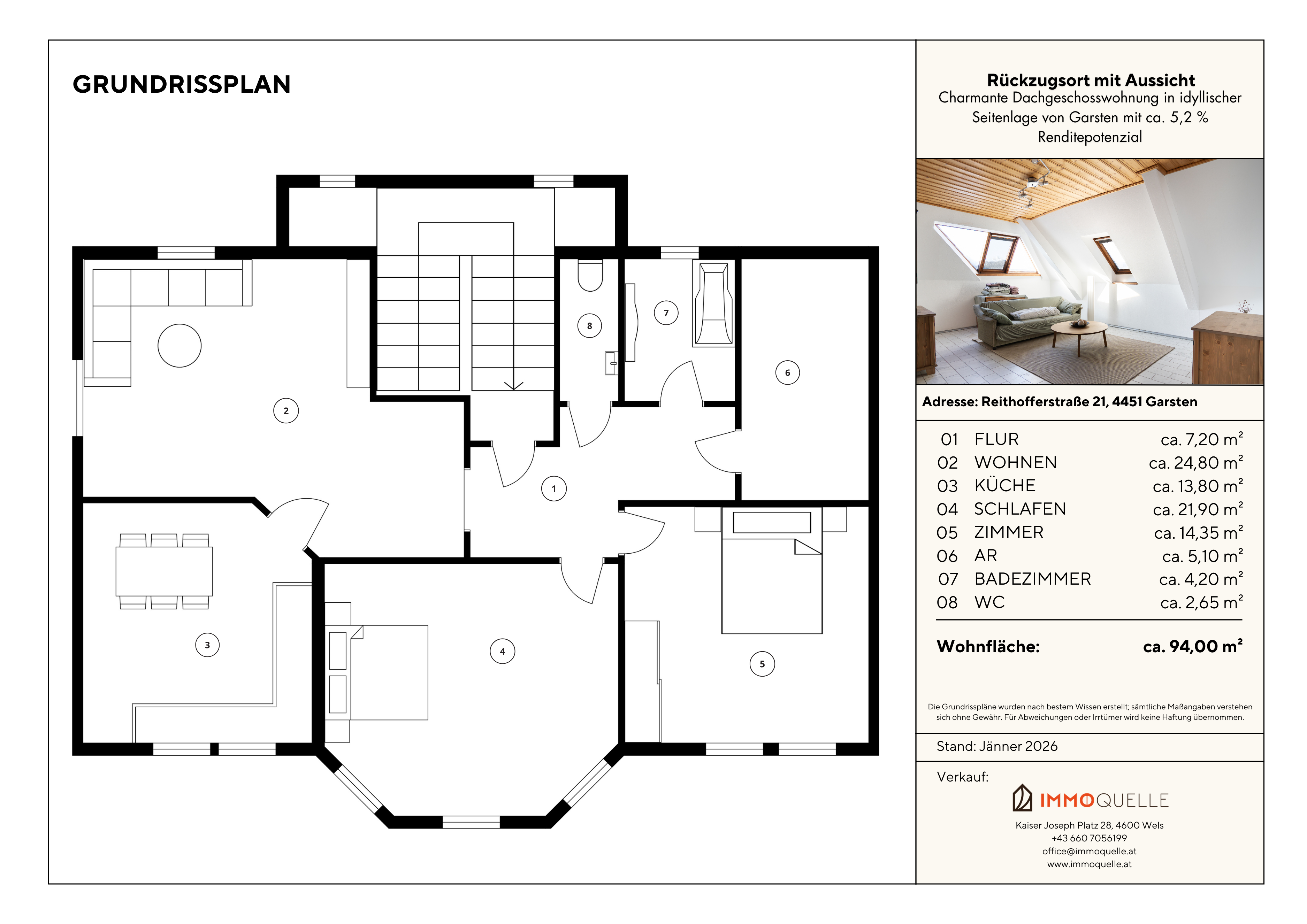 Willkommen über den Dächern von Garsten - in einer Wohnung, die nicht nur durch Licht, Ruhe und liebevoll gestaltete Details überzeugt, sondern auch als äußerst attraktive Kapitalanlage hervorsticht. Im dritten Stock eines gepflegten Wohnhauses und ruhig im Hinterhaus gelegen, bietet diese Immobilie auf rund 94 m² Wohnfläche eine seltene Kombination aus Wohnqualität und nachhaltigem Investment.