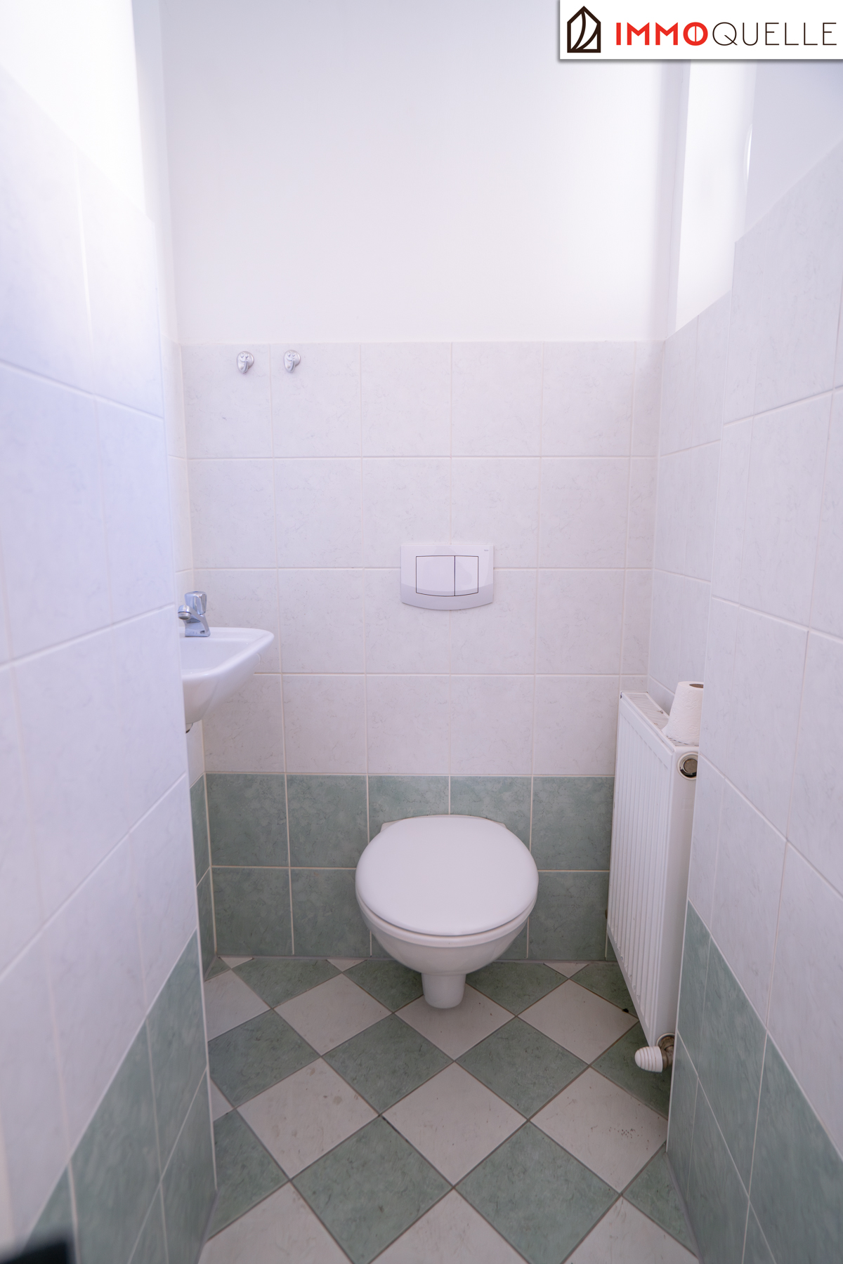 Das Badezimmer ist mit einer Dusche, einem Waschbecken und einem Handtuchheizkörper ausgestattet. Das WC ist separat angelegt. Ein praktischer Abstellraum befindet sich direkt auf derselben Etage und bietet zusätzlichen Stauraum.