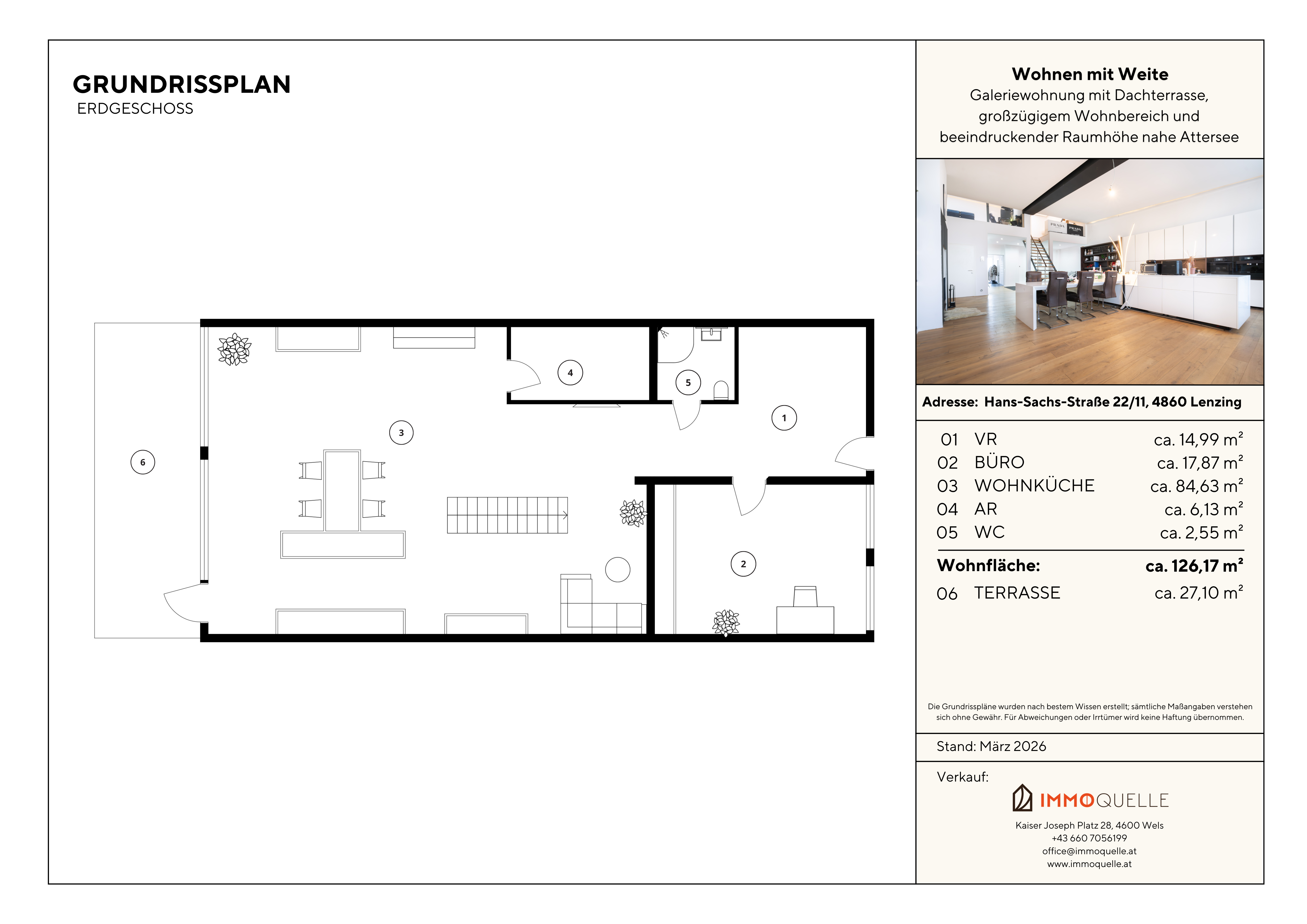 Galeriewohnung mit Dachterrasse, großzügigem Wohnbereich und beeindruckender Raumhöhe nahe Attersee