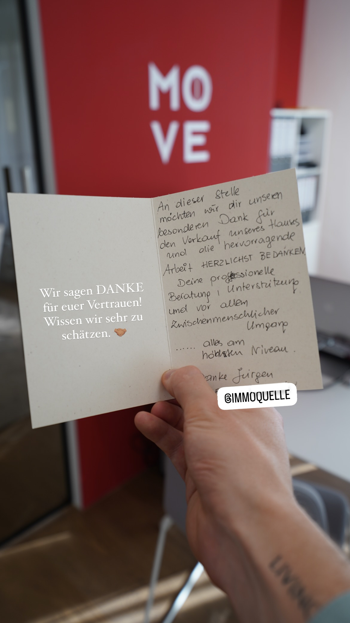 - Die Familie fühlte sich durchgehend gut betreut, ohne die typischen Vorbehalte gegenüber Immobilienmaklern zu spüren, und lobte die Zuverlässigkeit und Transparenz von IMMOQUELLE.